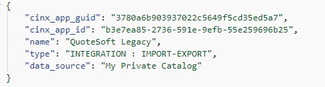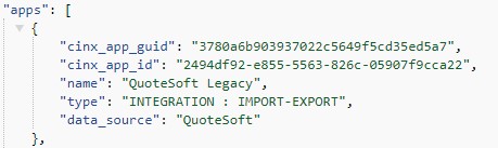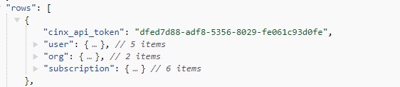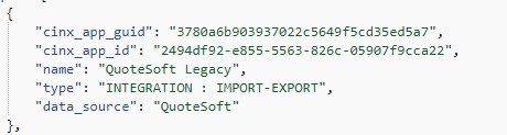 Please note that when working with the CINX Subscription/Authorization API response each combination of an application and a data source will be listed in separate blocks.