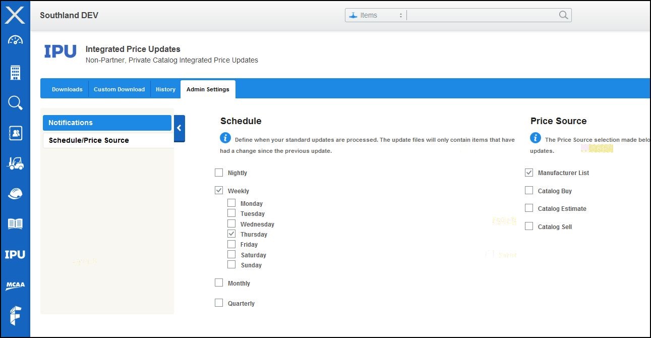 Importantly, a company can subscribe to an application multiple times provided that the data source is different. For example, a company using an industry estimating system may have CINX produce updates for different locations using different CINX Catalogs (data sources). One location may want standard list prices from the standard estimating database and another location may want update files to contain net buy prices based on their private catalog of content.